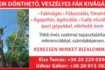 Bemutatkozó szöveg Az Alpintechnikás fa kivágás Kiss Tamás e.v. professzionális megoldásokat kínál veszélyes fák kivágására, gallyazásra és fakivágás utáni terület-tisztításra. Korszerű alpintechnikai módszerekkel dolgozunk, így szűk helyeken, épületek vagy vezetékek közelében is biztonságosan végezzük el a munkát. Több éves tapasztalattal, gyors kiszállással és korrekt árakkal állunk rendelkezésre lakossági és céges Bővebben……